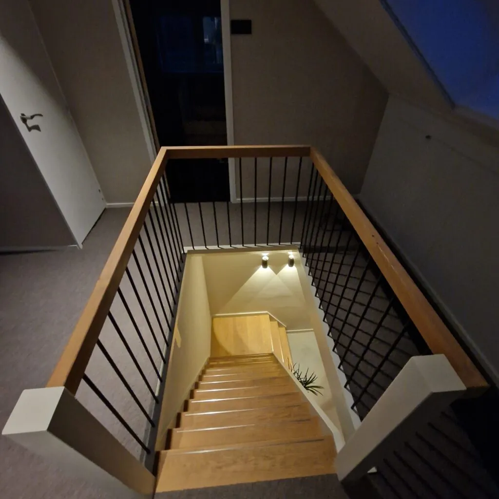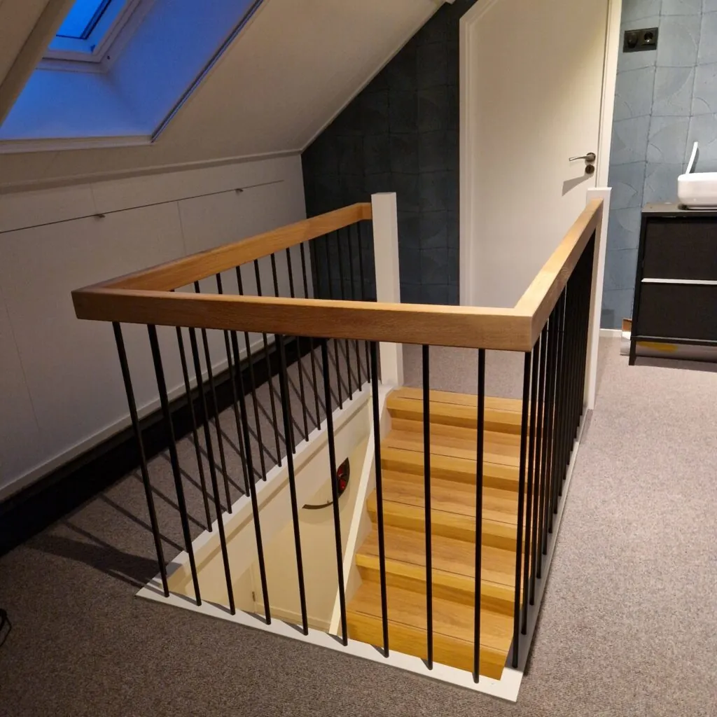 # Denk bijvoorbeeld aan de afwerking dmv een mooi traphek of het afsluiten van het trapgat met een design deur.