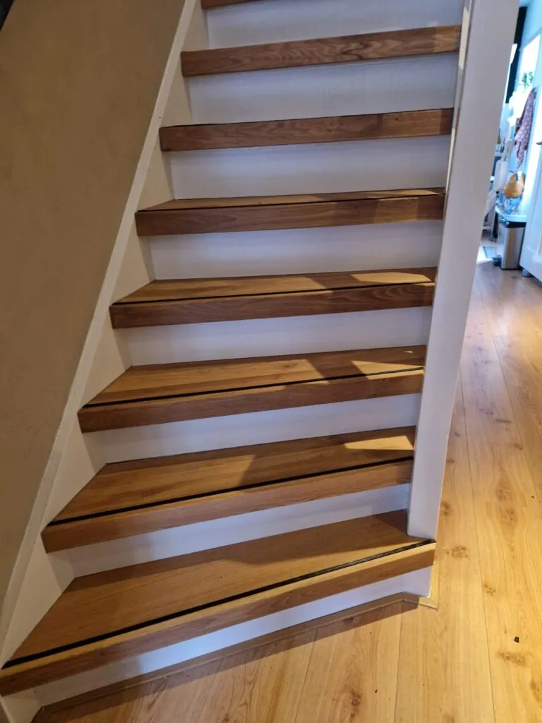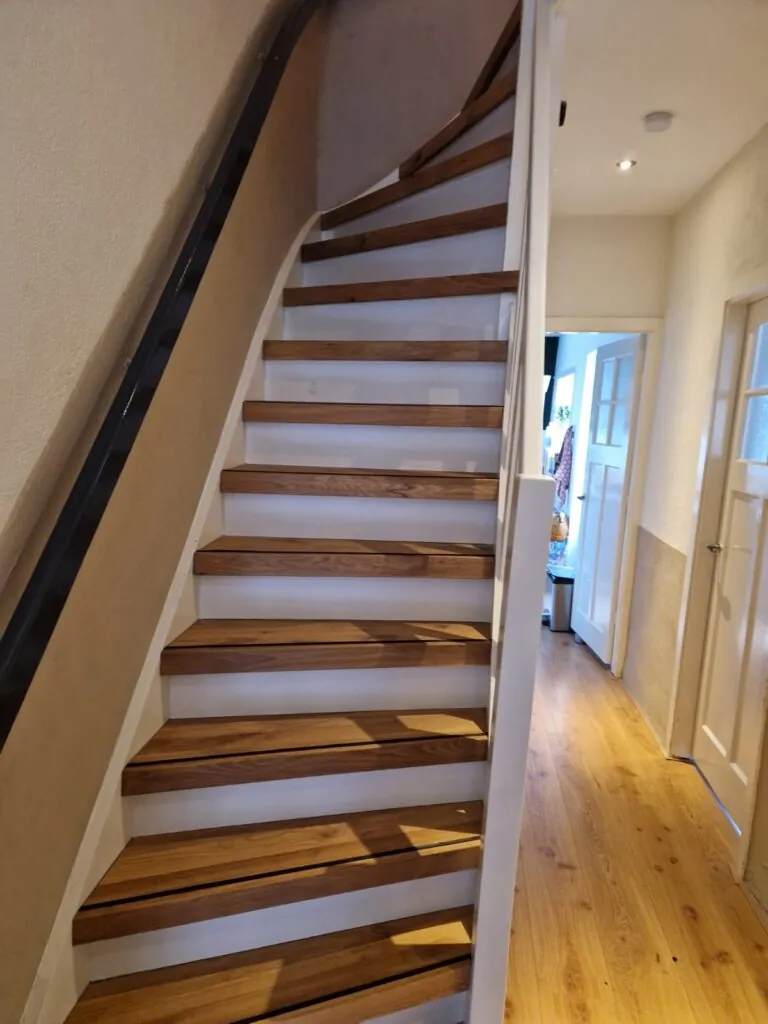 Traprenovatie met eiken overzettreden Gepost op 9 oktober 20249 oktober 2024 door Broere 2 trappen gerenoveerd met eiken overzettreden en antislipstrip. De eiken treden zijn behandeld met 2 componenten olie.