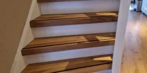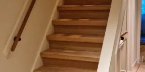 2 trappen gerenoveerd met eiken overzettreden en antislipstrip. De eiken treden zijn behandeld met 2 componenten olie.
