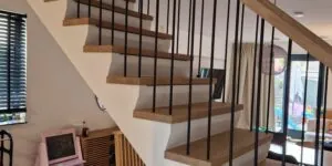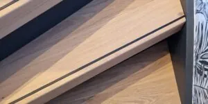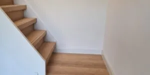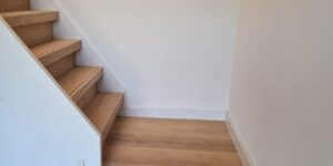 Bij deze klant mochten we de trap renoveren. Met eiken overzettreden en een zwarte antislipstrip.